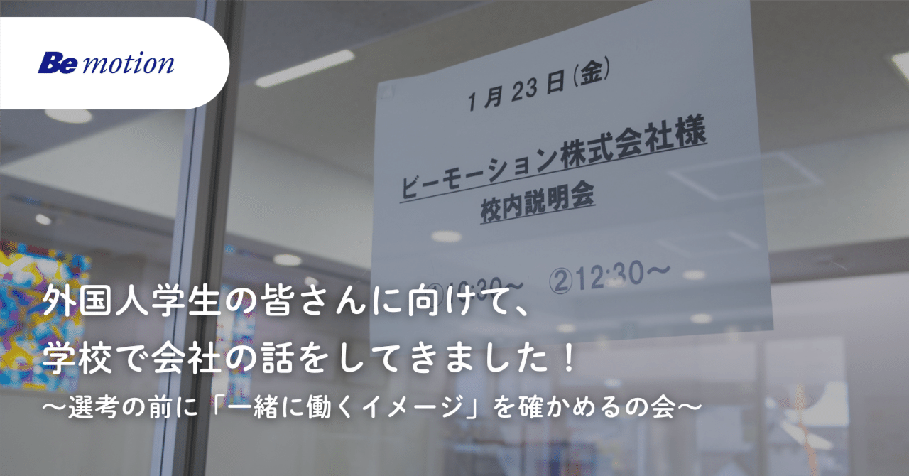 1月23日(金)、本校にて留学生対象にビーモーション株式会社様による校内説明会を実施しました。
