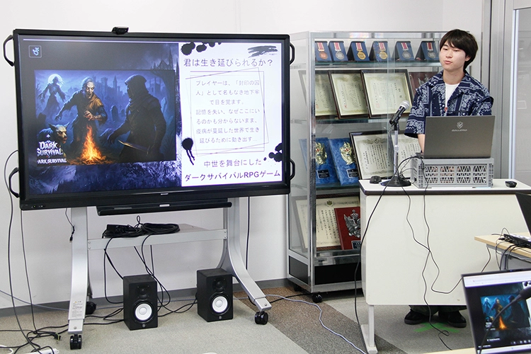 一般社団法人神奈川県情報サービス産業協会が主催する「学生ITコンテスト」に参加し、他校の学生とアイデアや作品の出来栄えを競い合うことにより自信をつける場として活用しています。2023年は、神奈川県下の大学生、短大生、専門学校生による134作品の中から本校の4作品(ビジネス企画部門:1作品、ITプロダクツ企画部門:3作品)が最終選考会に進み、IT・ゲームソフト科1年の「AI VTuber Guide」が最優秀賞に選ばれました!